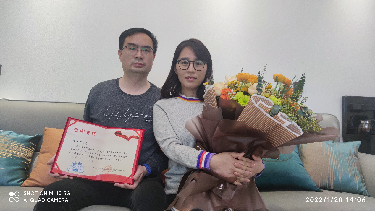 陈帅印还邀请爱人李君结合丰富的现场工作经验,在线为师生志愿者进行流调溯源、风险人群排查、信息汇总等开展培训和答疑。陈帅印说,他们学着相近的专业,有着共同的理想,他致力于科学研究,她奔赴在现场前线,他们对彼此的工作无比支持。