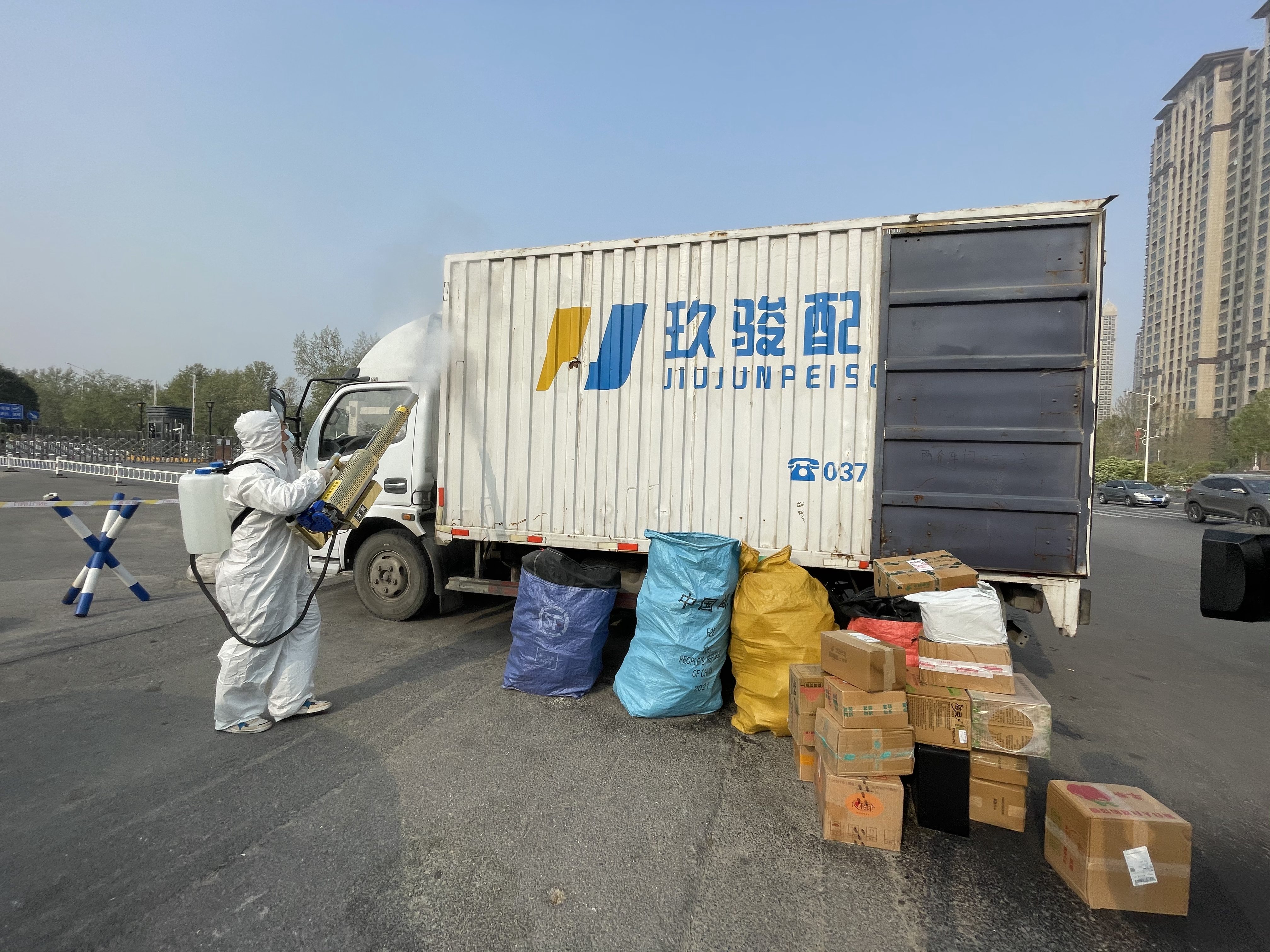 后勤党员服务队进行快递消杀