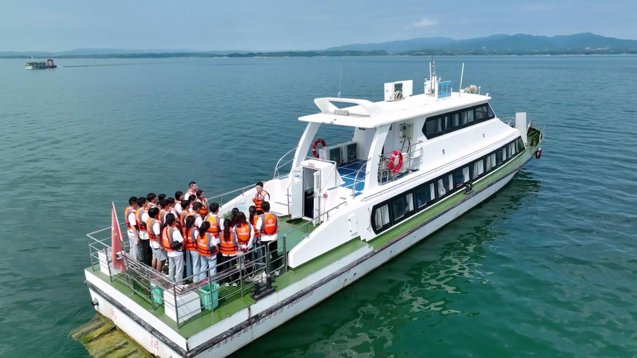 在风波浪涌中,师生们在丹江口水库一同乘船感受库区风光,看一汪碧水映青天,于大船之上感受水之清澈。队员们共同品尝了从水库中心20米深度处打捞上来的丹江水,在品尝清澈甘甜丹江水的同时,感受“一泓清水润京津”伟大梦想实现的幸福感。