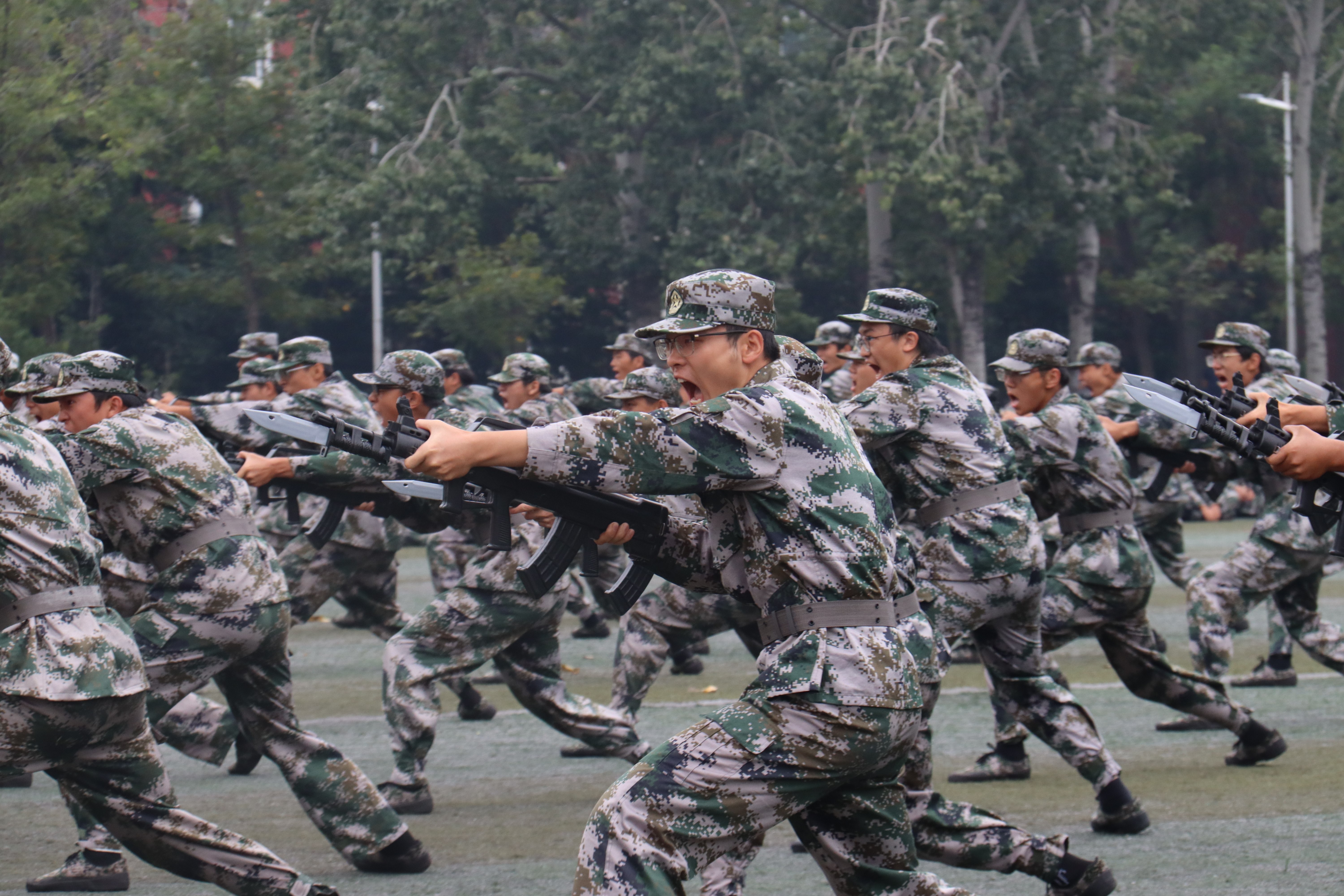 军训汇报表演大会上,气势如虹的口号声响彻操场上空,刺杀操、军体拳,劲力十足,声势夺人;女子匕首操,刚柔相济,行云流水;捕俘拳、战术动作,呈现“狭路相逢勇者胜”的血性豪情……同学们的精彩表演赢得了全场师生们的阵阵掌声。这场精彩的汇报表演,历经多天的锤炼,历经从零到一的淬炼成长。