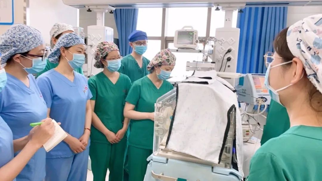 初七,医生华敏敏和段稳丽正在开医嘱,突然得知有28周三胞胎即将剖宫产娩出,气氛骤然紧张起来,他们迅速与护士长赵晨静协调全科在岗人员,分秒必争,在三胞胎患儿出生前预热好新生儿暖箱、准备好必须的监护仪、呼吸机等抢救设备。