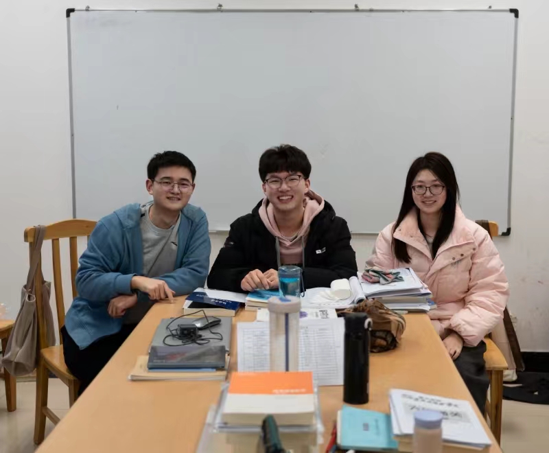 “目标国赛小队”成员合影(左 孙紫阳 中 田政杰 右 李亚文)