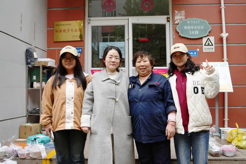 宿舍管理需要管理员与宿舍楼内的其他工作人员通力协作。武永杰深谙这一点,她待人接物热情友善,在晨会结束后与她们聊聊家常,为她们排忧解难。她说:“我们年纪相仿,我力所能及的事,能帮一点是一点。和谐、友好的团队氛围是楼内各项工作顺利开展的保障。”