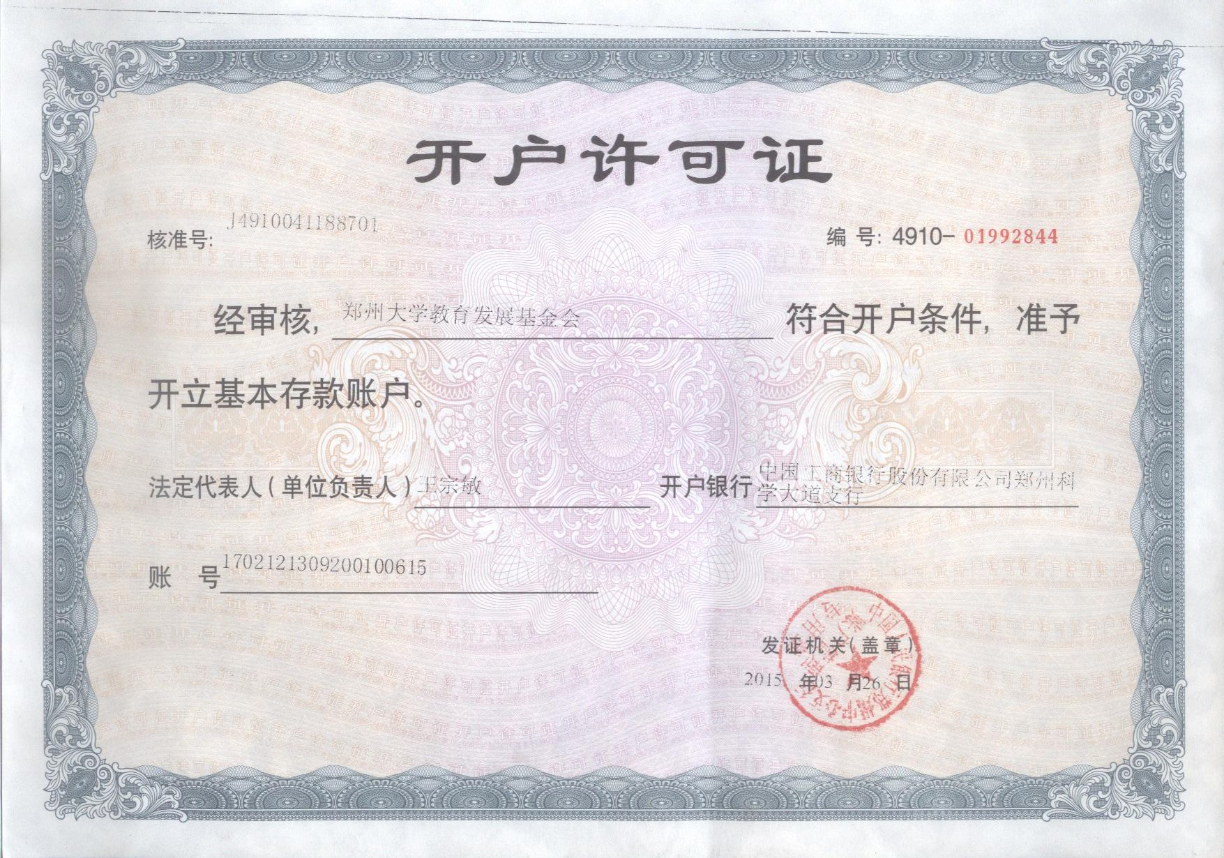 开 户 行:中国工商银行股份有限公司郑州科学大道支行