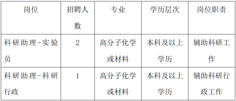 pp电子官方网站化学学院特种高分子材料团队根据科研工作需要,现公开招聘科研助理3人。