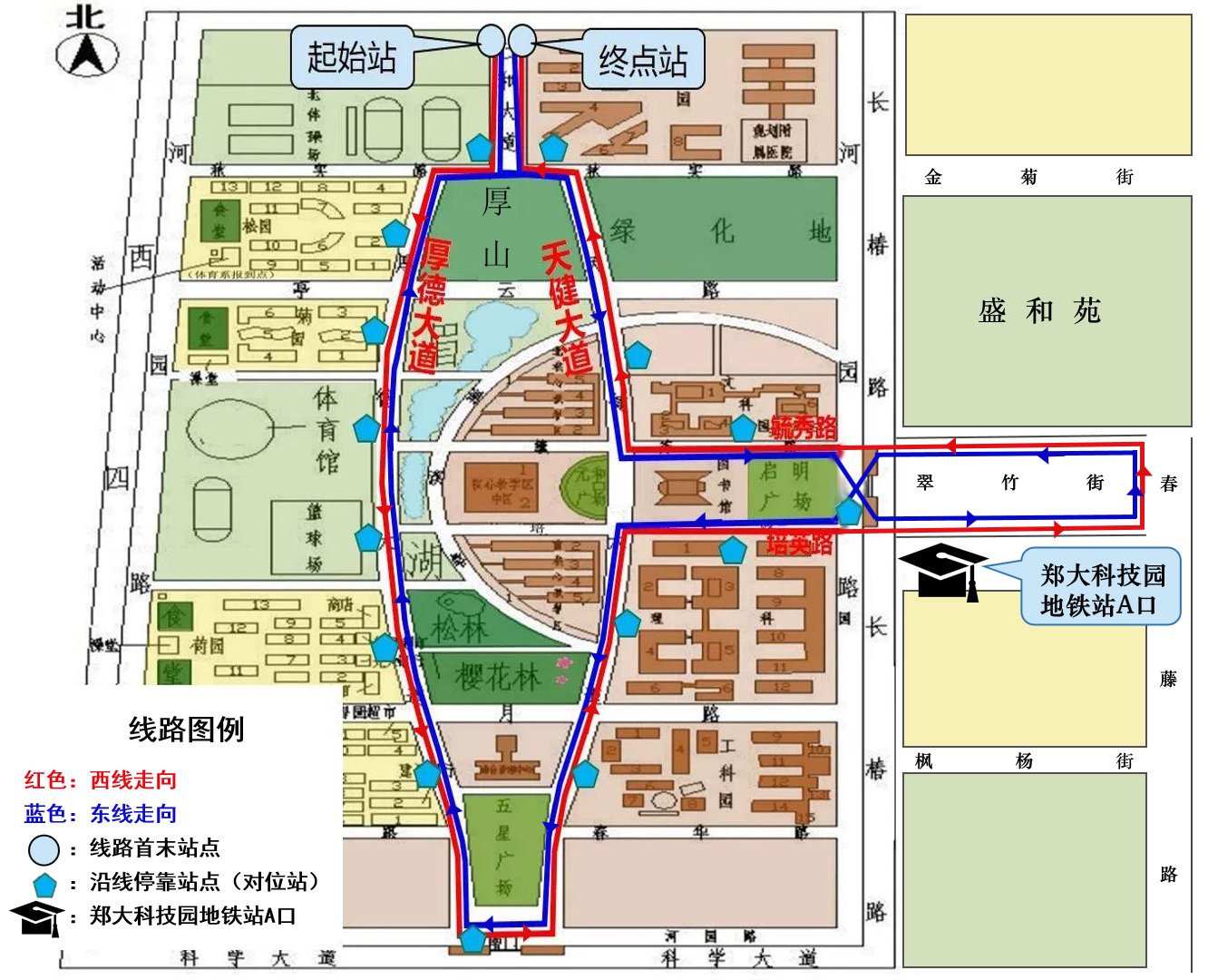 三、服务线路:在校园巴士原运行线路的基础上,增设pp电子官方网站东门外科技园地铁A口站点,具体线路附后。