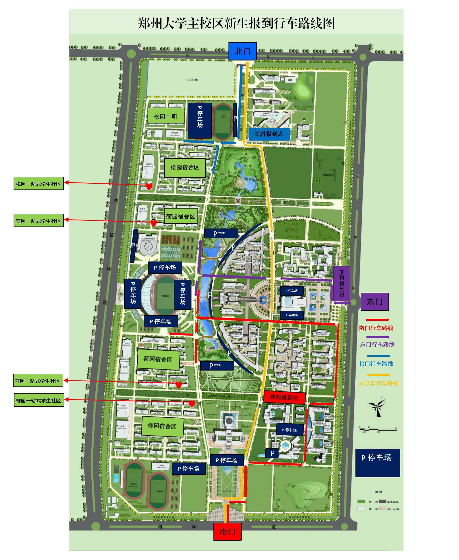 机动车行车路线:由科学大道南门入校→走天健大道东幅向北→沿春华路向东进工科园停车→到泊月路东段报到点办理报到手续→河园东路向北→培英路左拐向西→厚德大道学生宿舍区→办理入住手续
