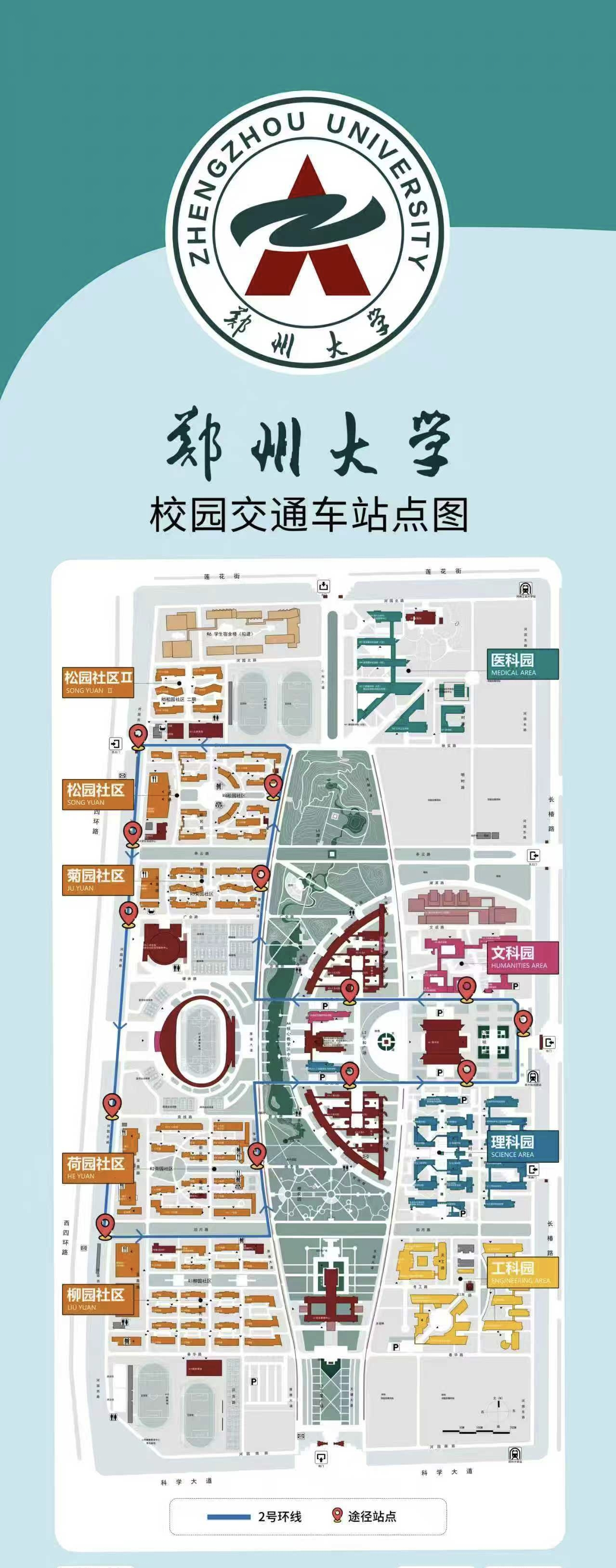 途经站点:东门站→文科园毓秀路站→医科园仁和大道站→北门站→松园厚德站→菊园厚德站→本源体育场厚德站→荷园厚德站→柳园厚德站→南门站→工科园天健站→理科园天健站→图书馆培英路站→东门站