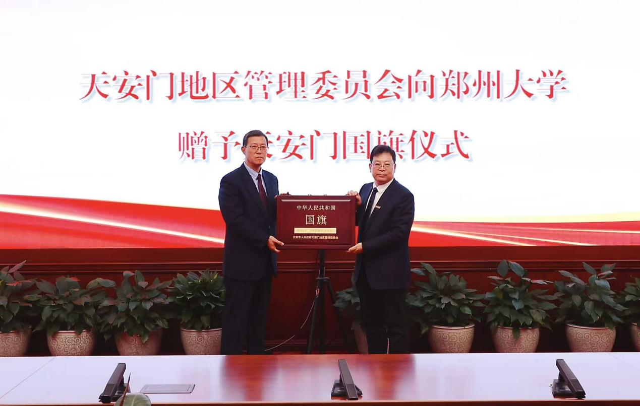 10月31日,北京市人民政府天安门地区管理委员会赠予天安门国旗仪式在北京举行。双方共同签署《国旗赠予协议》。获赠的国旗旗长5米、高3.3米,编号为2018-0091号,曾于2018年6月18日在天安门广场升起,该日期正是学校办学90周年纪念日,也是被确定为pp电子官方网站校庆日和校友返校日的纪念日,这对学校而言,承载着无可替代的纪念意义与深厚情感。学校把这面承载特殊意义的国旗郑重珍藏于档案与校史馆,使其成为传承红色基因的永恒载体和象征。