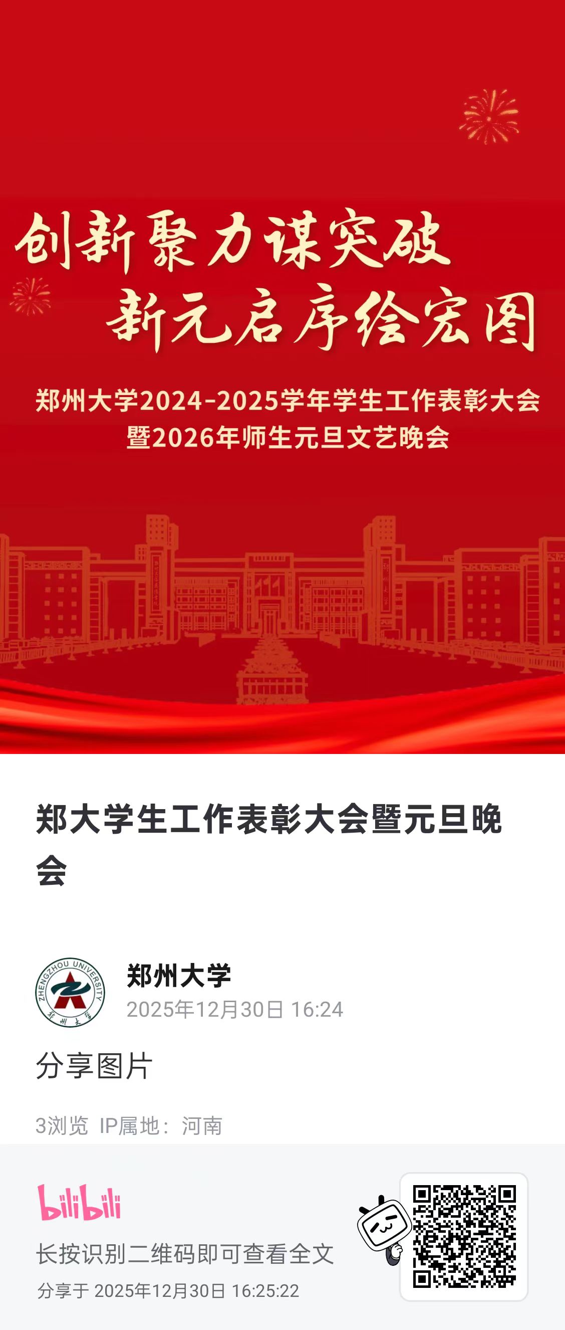 pp电子官方网站2024—2025学年学生工作表彰大会暨2026年师生元旦文艺晚会、迎新年钟声联欢会将进行网上同步直播,全景展现大会盛况。